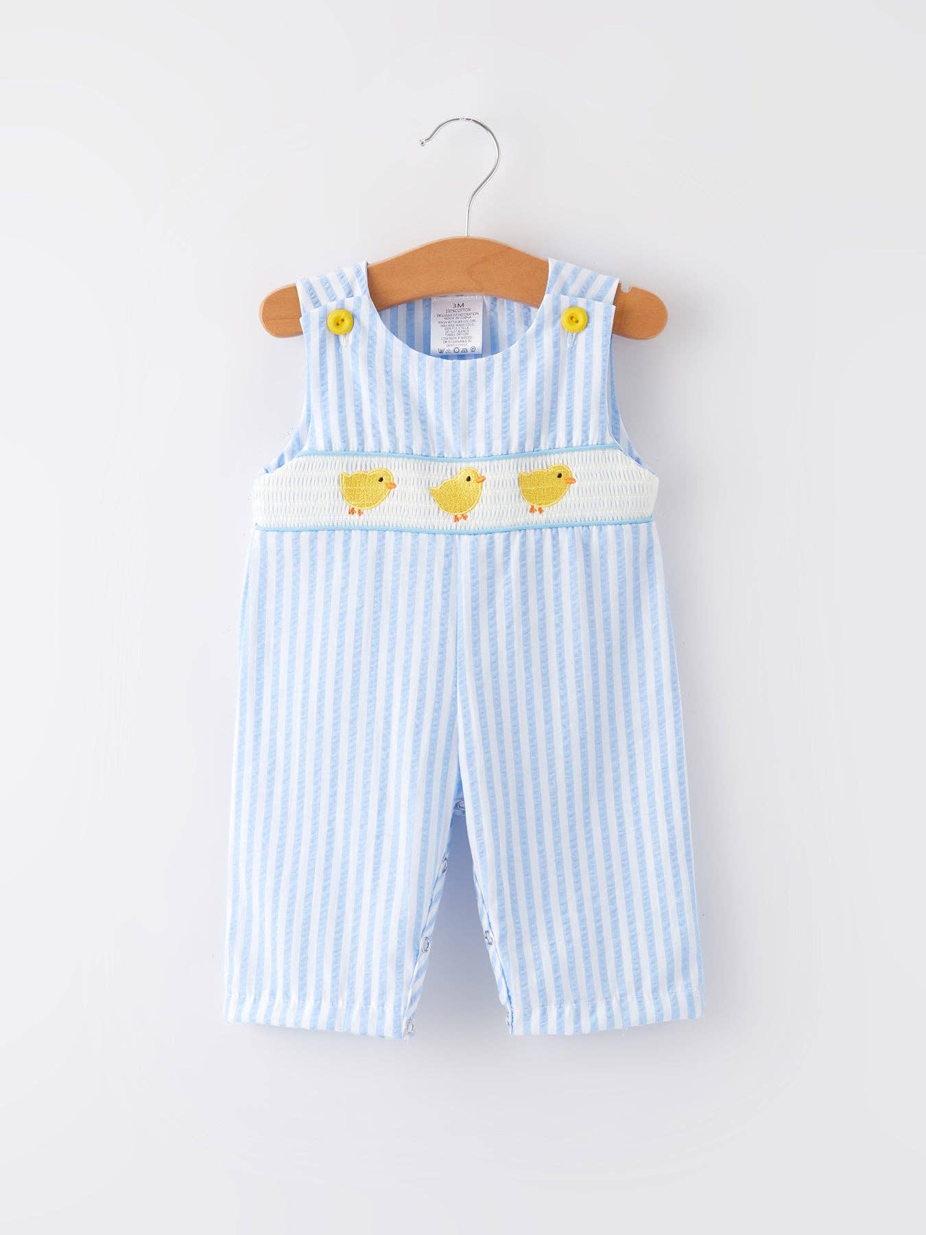 This adorable romper features a delicate chicken embroidery in a vibrant blue color, perfect for spring and summer seasons. Give your child a stylish and charming look with this must-have romper!